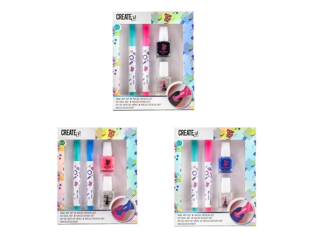 Wyjątkowy zestaw do paznokci w pięknych, wyrazistych kolorach! Zawiera dwa lakiery do paznokci oraz dwa markery w różnych kolorach. Dzięki niemu każda dziewczynka będzie mogła stworzyć swój salon piękności i wcielić się w rolę stylistki. Najpierw pomaluj paznokcie lakierem, a następnie stwórz na nich unikalne wzory za pomocą dołączonych pisaków. Zestaw ten świetnie sprawdzi się jako prezent.