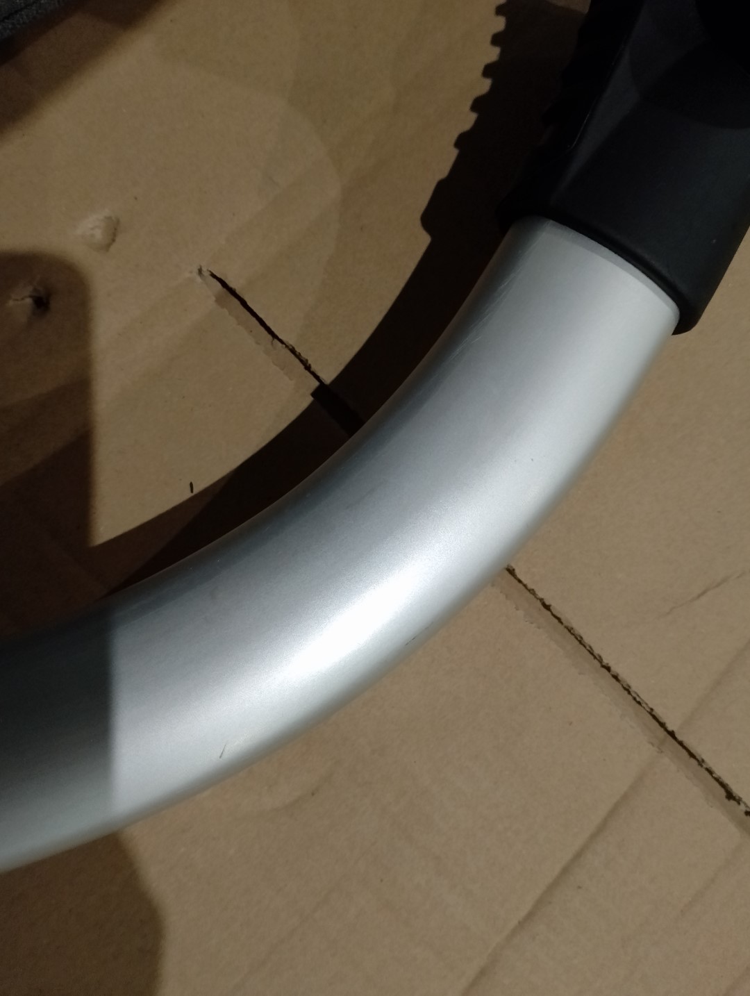 Lekka rama i zwrotność to nie wszystko. Teleskopowa rączka z regulacją wysokości od 98,5 cm do 106,5 cm dostosuje się do wzrostu rodzica. Dla większej wygody pokryta jest ekoskórą.