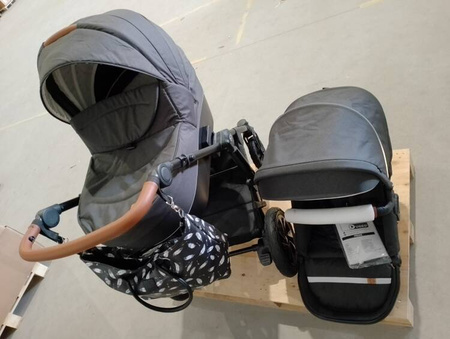 Wózek gondola i spacerówka w jednym kompaktowym zestawie. Wykonana i bardzo wytrzymała konstrukcja, wykonana z aluminium i wykończona z wysokiej klasy materiałów, wyposażona w duże wypełnione powietrzem, amortyzowane koła. Konstrukcja pozwalająca na szybkie i łatwe składanie.