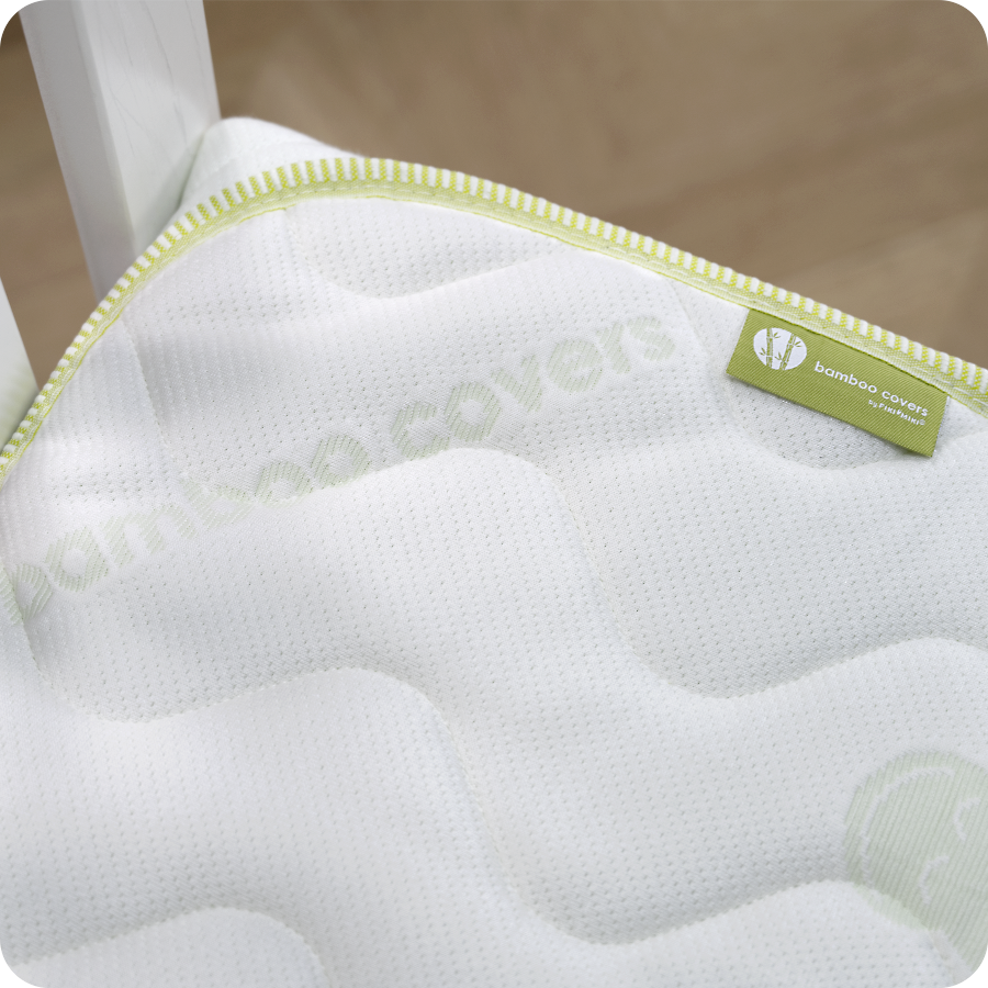 Delikatna kolorystycznie personalizacja dzianiny bamboo covers zapewnia, że wzór nakładki nie będzie przebijał przez bawełniane prześcieradło.