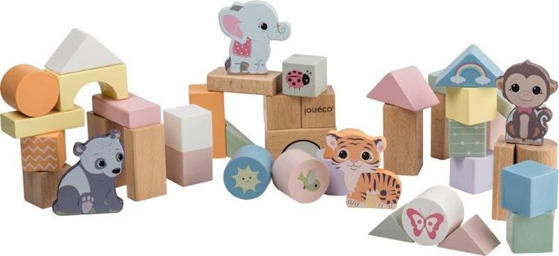 Drewniane, pastelowe klocki marki JOUECO zapakowane są w piękne i praktyczne wiaderko. Dzięki tym klockom Twój maluszek zacznie rozwijać swoją kreatywność, ćwicząc przy tym cierpliwość i zręczność, a to wszystko w trakcie zabawy!