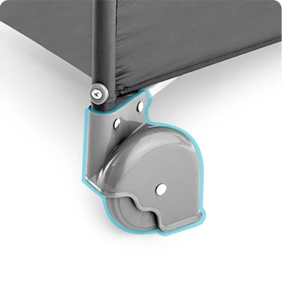 Łóżeczko posiada parę kółek z blokadą znacznie ułatwiając jego przemieszczanie. Blokada kółek gwarantuje stabilność i bezpieczeństwo, zapobiegając niekontrolowanemu przesuwaniu się łóżeczka. Dzięki temu rodzice mogą być pewni, że łóżeczko pozostanie na swoim miejscu, gdy jest to konieczne.