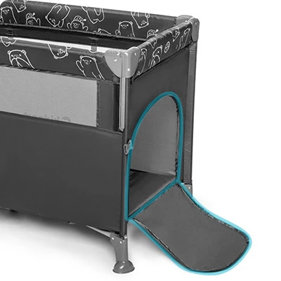 Łóżeczko wyposażone jest w odpinane wejście boczne zapewniając wygodny dostęp do dziecka bez konieczności podnoszenia go z góry. To praktyczne rozwiązanie ułatwia także dziecku samodzielne wchodzenie i wychodzenie z łóżeczka. W ten sposób, łóżeczko pełni również bezpieczną przestrzeń do zabawy.