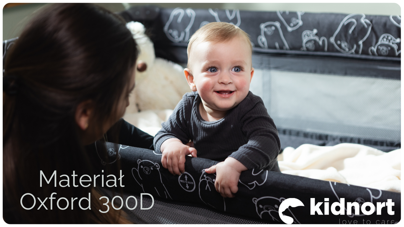Łóżeczko wyróżnia się wysoką jakością wykonania, dzięki zastosowaniu materiału Oxford 300, który odznacza się większą grubością. Jest bardzo wytrzymały, niezwykle odporny na przetarcia i uszkodzenia mechaniczne.