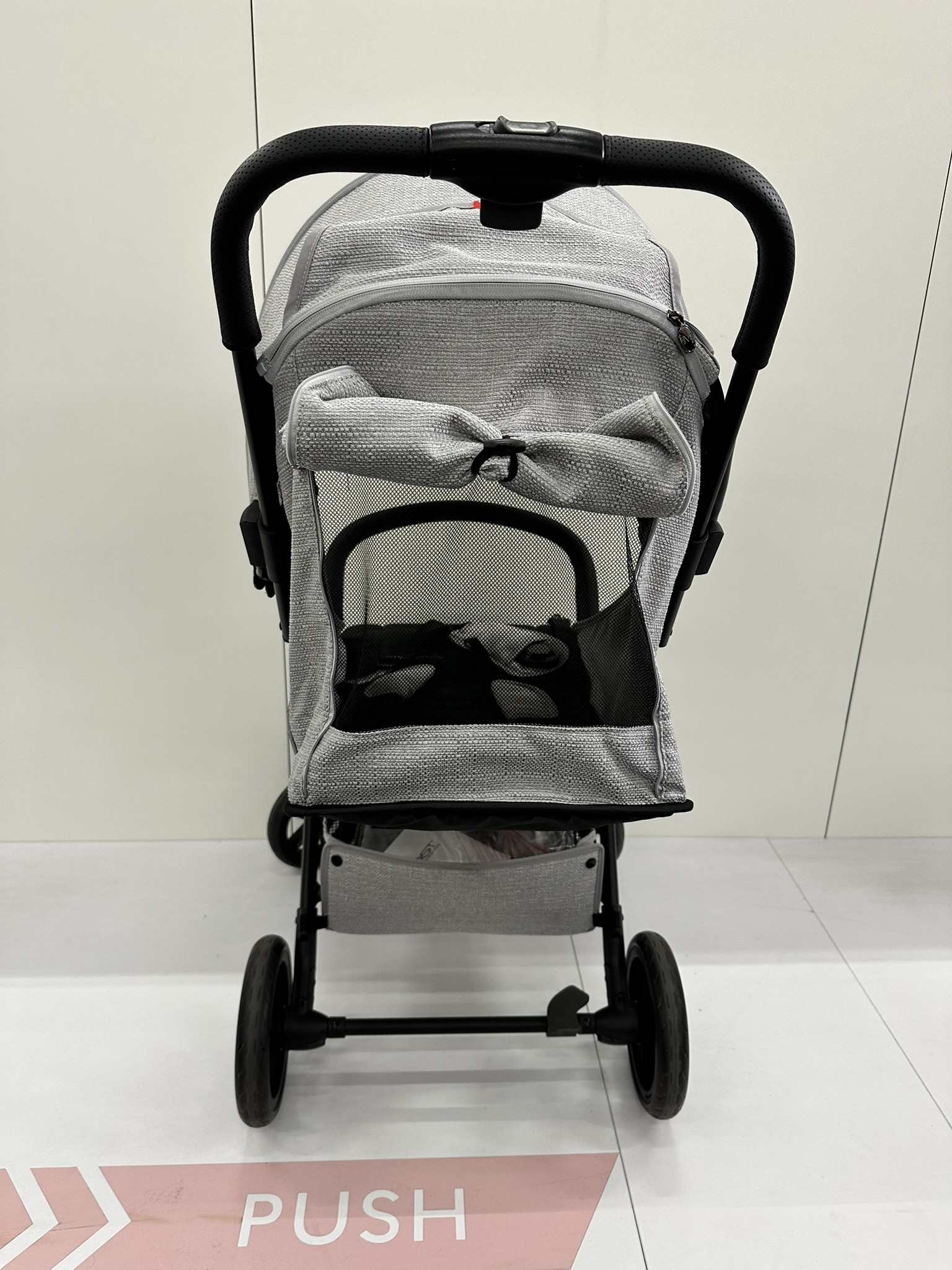Dobrze wyściełane siedzisko ma łatwo rozkładane oparcie, a podnóżek można regulować w dwóch pozycjach. Możesz regulować oparcie w trzech różnych pozycjach jedną ręką. Pozycja siedząca jest całkowicie pionowa, aby zapewnić dziecku swobodę ruchów.