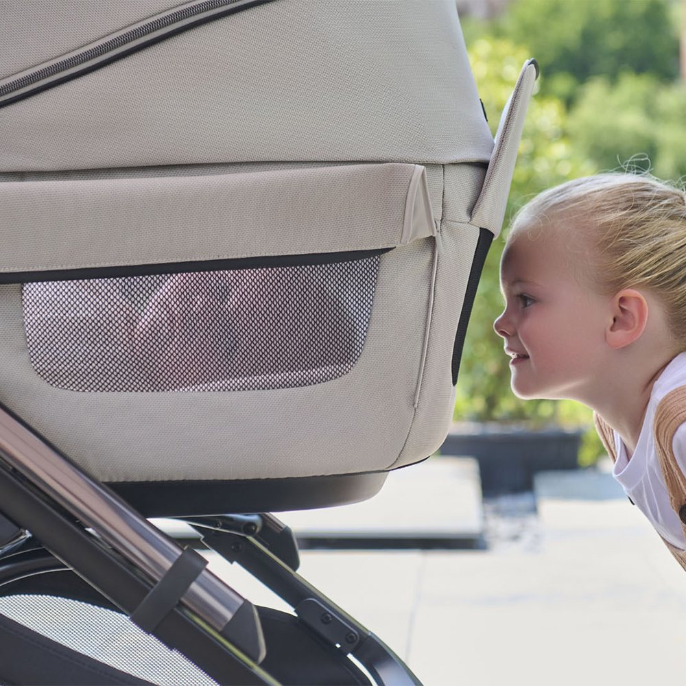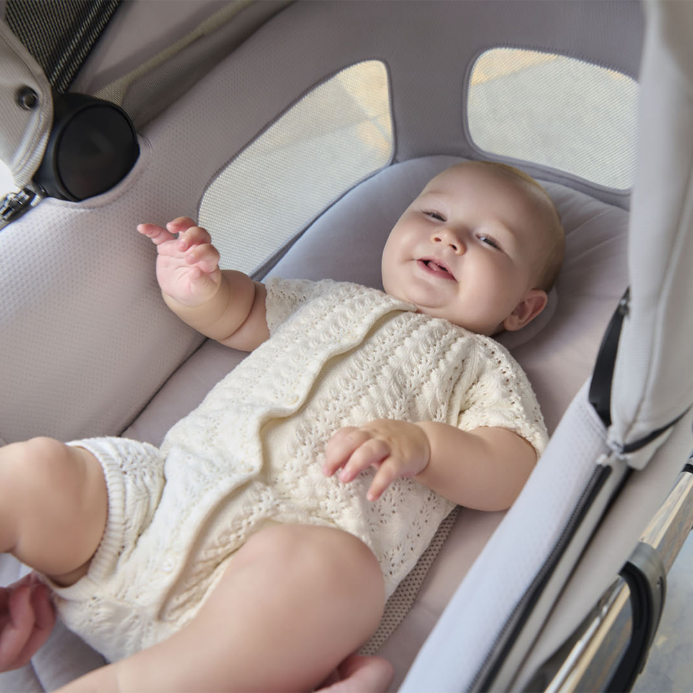Odkryj naszą nową gondolę Open Up, która zadba o bezpieczeństwo i wyjątkowe samopoczucie Twojego dziecka. Dodatkowe okienka wentylacyjne zapewnią odpowiednią temperaturę wewnątrz gondoli, a także doskonałą cyrkulację powietrza.