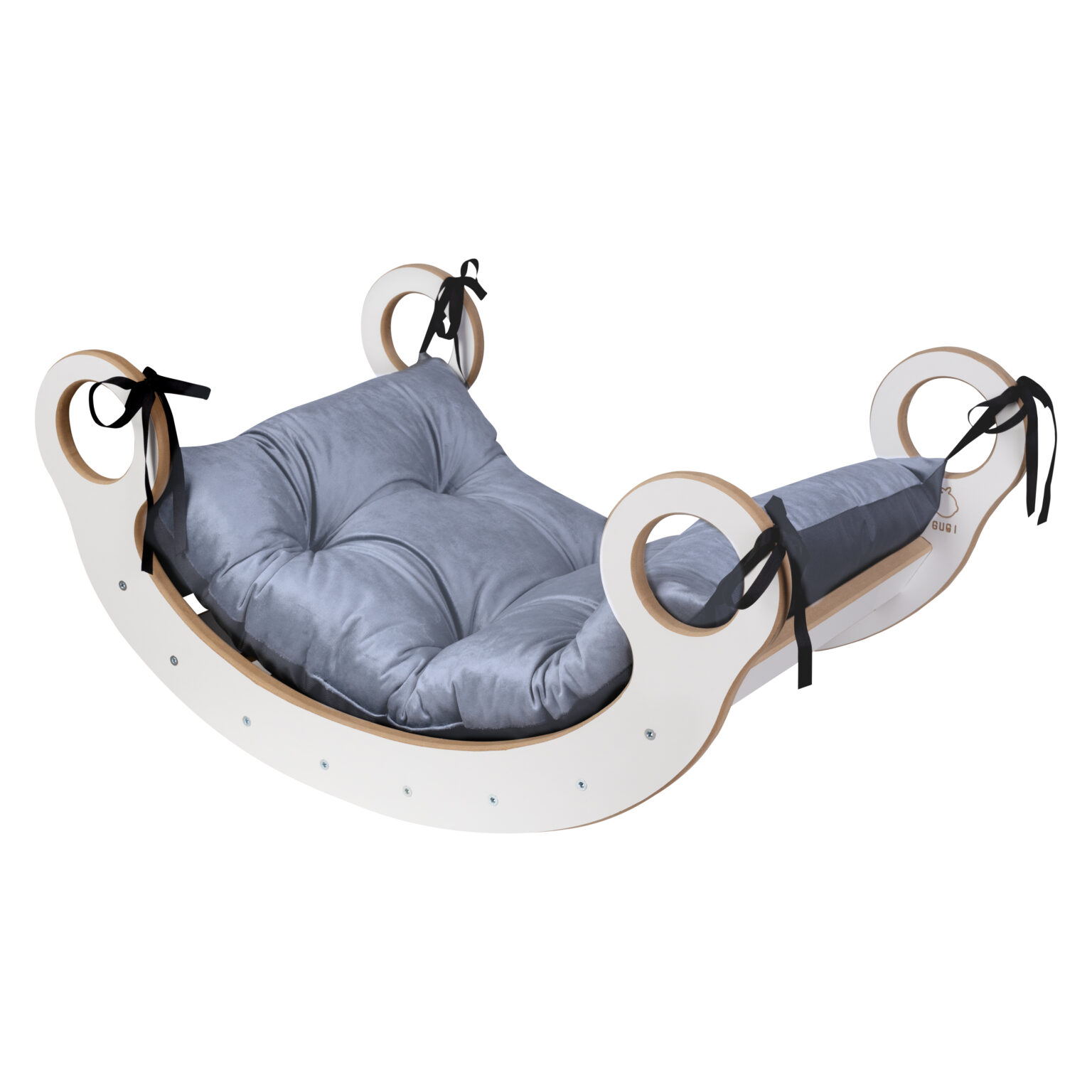 Bujak Montessori to uniwersalna zabawka dla dzieci. Bujak można wykorzystywać w dwóch ustawieniach jako bujak-huśtawka lub jako most . Zastosowań ma tyle, na ile pozwoli wyobraźnia.