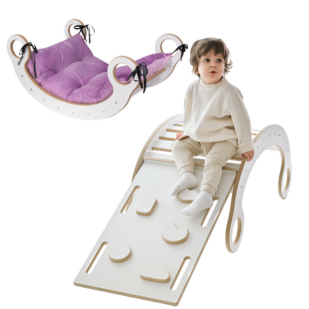 Regularne korzystanie z bujaka przyczynia się do poprawy koordynacji ruchowej, szybkości, efektywności oraz rozwoju psychomotorycznego dziecka. Dodatek w postaci ścianki wspinaczkowej i zjeżdżalni do bujaka Montessori czyni go jeszcze bardziej atrakcyjnym i wszechstronnym.