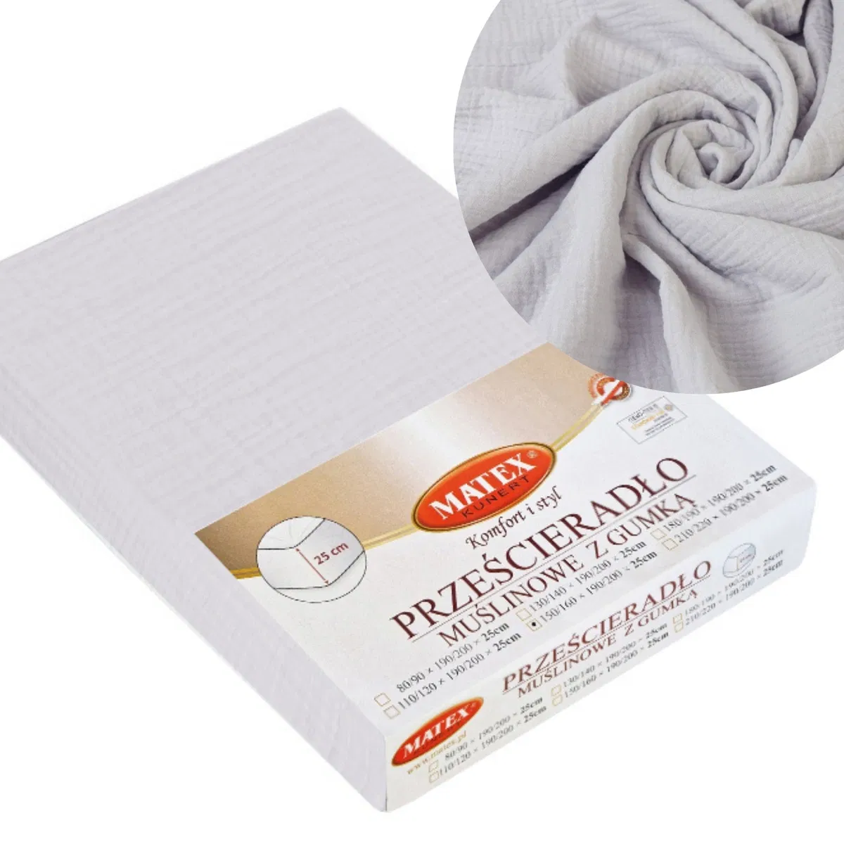 Baby Matex Prześcieradło z Gumką 60x120 Muślin Szare