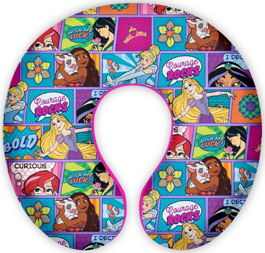 Poduszka na szyję w kształcie rogala jest wykonana z przyjemnych w dotyku materiałów i ozdobiona postaciami z ulubionych bajek Disney'a. Mięciutki materiał wypełniający poduszkę umożliwia dziecku wygodne ułożenie główki podczas snu w trakcie podróży.