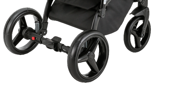 System amortyzacji zastosowany w wózku zapewnia dziecku komfortowe warunki podróży nawet w bardziej wymagającym terenie. Dla opiekuna również nie pozostaje to bez znaczenia - dzieki amortyzacji drgania są mniej odczuwalne na rączce wózka.