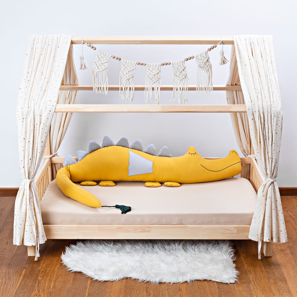 Smokozaur ma długość ok 200 cm (+/-5 cm) i uszyty jest z bawełny posiadającej certyfikat Oeko-Tex Standard 100 i /lub TUV oraz wypełniony antyalergiczną włókniną silikonową.