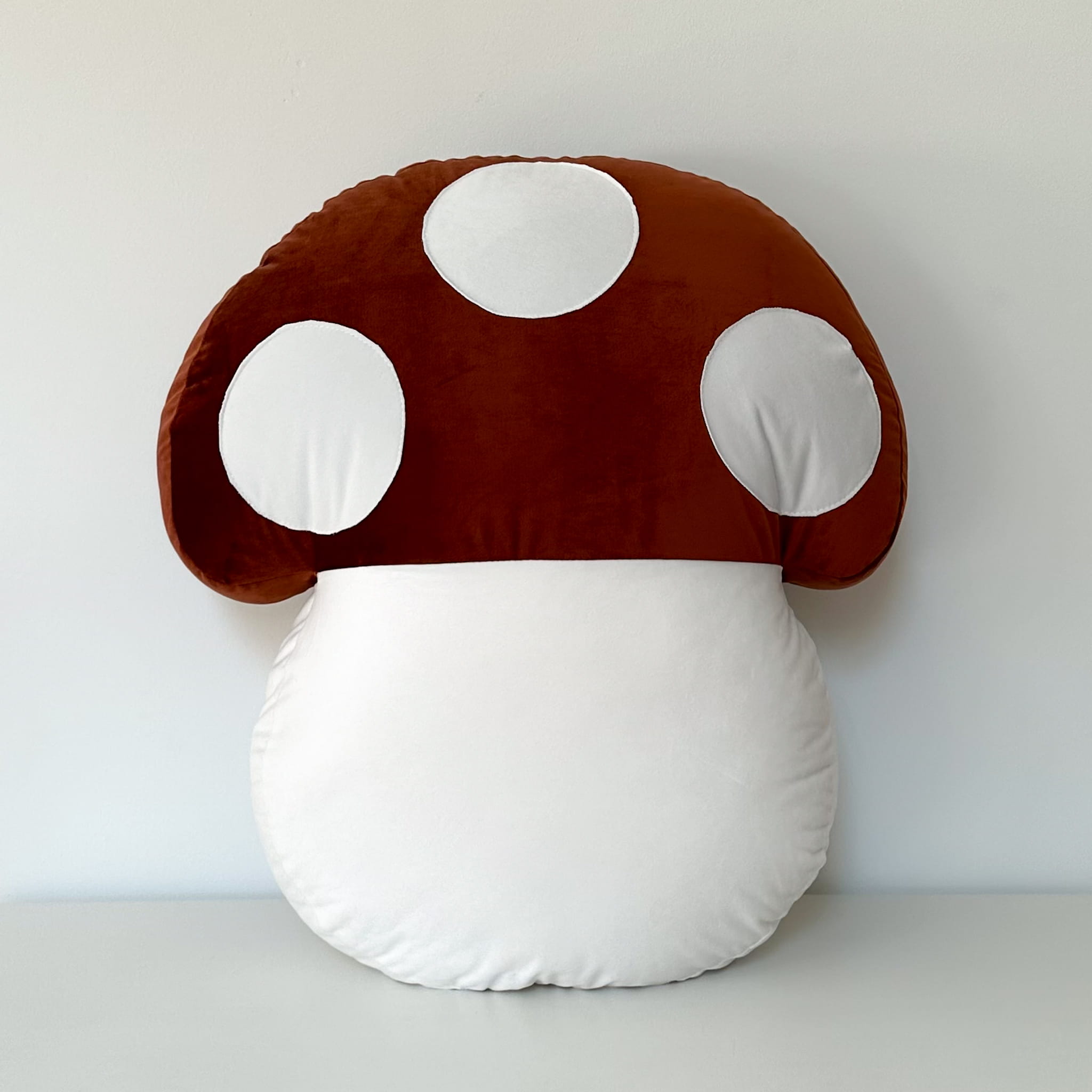 Poduszka została uszyta z miękkiego velvetu w intensywnym, czerwonym kolorze z charakterystycznymi białymi kropkami. Delikatna w dotyku tkanina zapewnia przyjemność użytkowania, a oryginalny kształt nadaje wnętrzu wyjątkowy, magiczny charakter. To idealny dodatek do pokoju urządzonego w stylu leśnym, boho lub skandynawskim.
