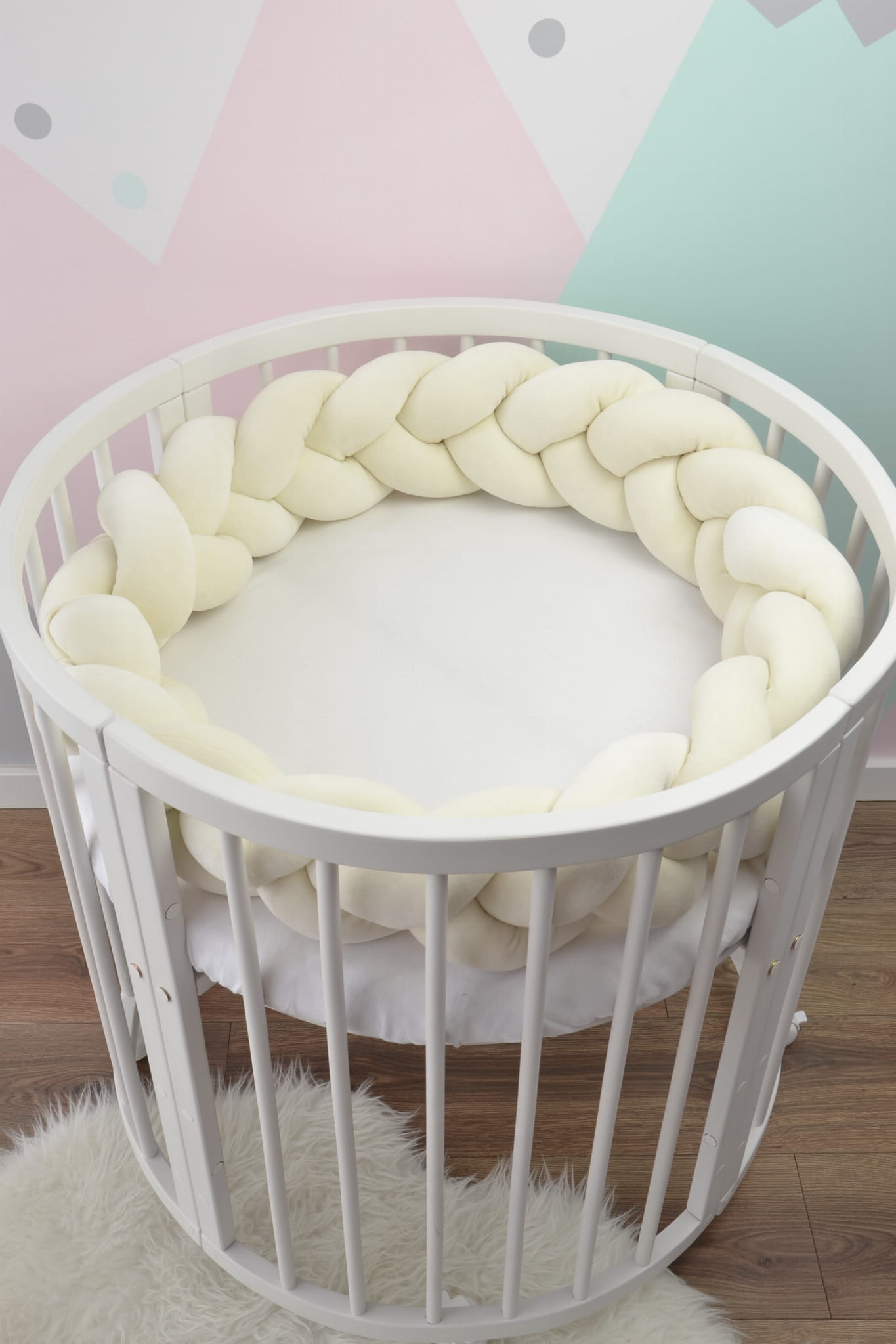 Wykonany z bardzo miękkiego i delikatnego weluru dziecięcego (w składzie aż 80% bawełny). Ochraniacz warkocz wypełniony jest bezpiecznym i antyalergicznym puchem silikonowym. Takie połączenie daje puszystość i delikatność.