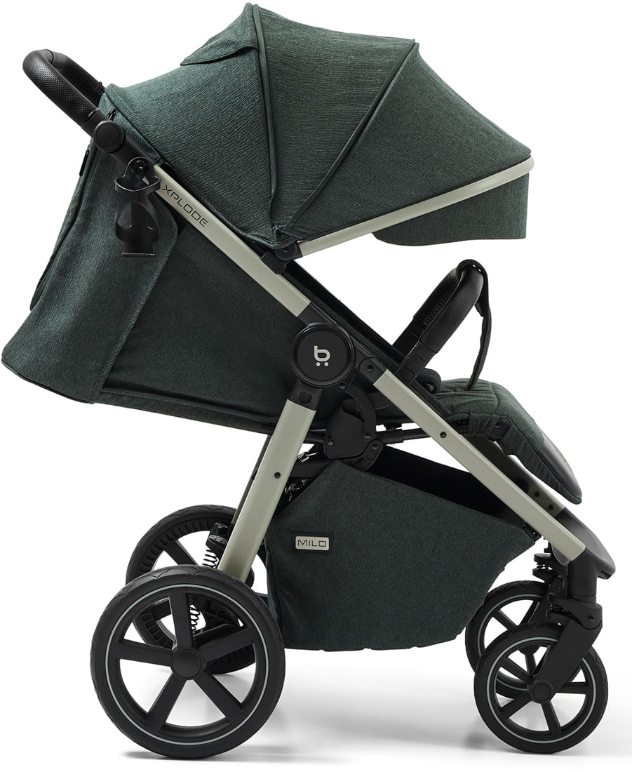 Xplode Mild to wózek, który dzięki w pełni łożyskowanym, bezobsługowym pneumatycznym kołom, gładko pokonuje każdą nawierzchnię – od miejskich chodników po bardziej wymagające tereny, zapewniając dziecku maksymalny komfort podczas każdego spaceru