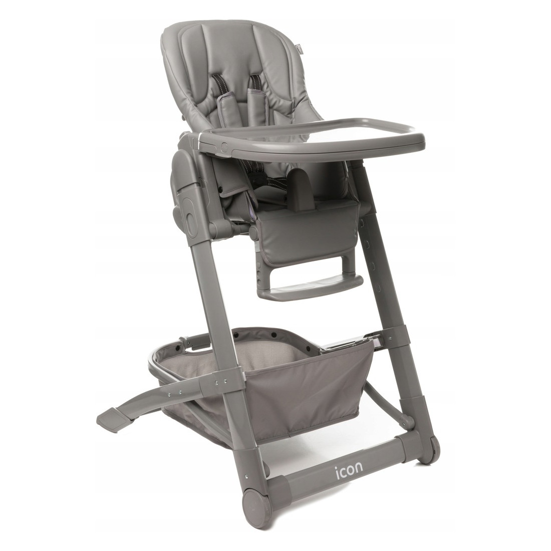 Krzesełko Icon zostało wyposażone w pokrycie z eko-skóry, które zapewnia wygodę i łatwość czyszczenia, a ogromny kosz na akcesoria i zabawki uzupełnia jego walory użytkowe. Łatwy i szybki sposób składania oraz kompaktowy rozmiar sprawdzą się podczas przechowywania i transportu.