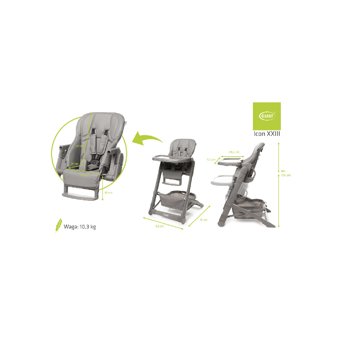 4BABY Icon Krzesełko do Karmienia Grey