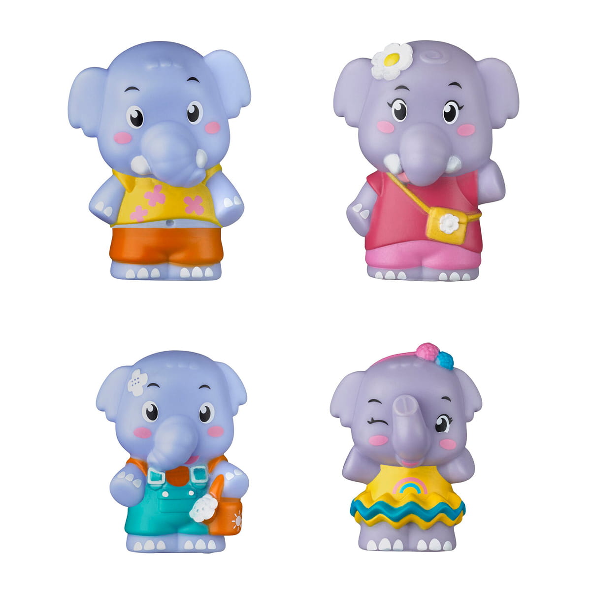 Zestaw czterech figurek wesołych słoników.