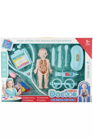 Zalety produktu pobudza wyobraźnie dziecka, nauka opieki nad chorym, rozwija kreatywność dziecka. MEGA CREATIVE przedstawia Zestaw Lekarski ze wszystkimi niezbędnymi przyrządami lekarskimi. Z tym zestawem, wszyscy pacjenci zostaną wyleczeni Zawartość zestawu stetoskop, szkielet człowieka, identyfikator lekarza, okulary, strzykawka, tabletki, miska na narzędzia lekarskie, pęseta, nożyk, łyżeczka.