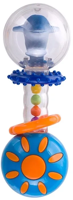 Kolorowa i poręczna grzechotka z ruchomymi elementami zachęca dziecko do ćwiczeń i zabawy, stymulując jego rozwój psychomotoryczny. Dziecku łatwo chwycić ją w rączkach. Ma delikatnie zaokrąglone kształty. Przezroczyste części zabawki zawierają małe, kolorowe elementy, które poruszają się podczas zabawy i wywołują przyjemny dźwięk grzechotania. Przeznaczona dla dzieci w wieku 0 m+.