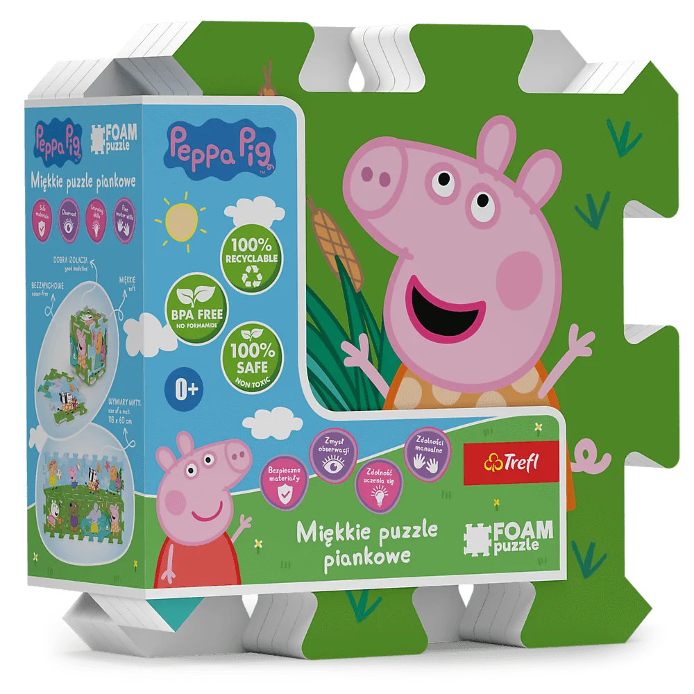 Układanka puzzlopianka Peppa Pig to zestaw dużych i miękkich puzzli, stworzonych z myślą o małych fanach bajki Świnka Peppa.