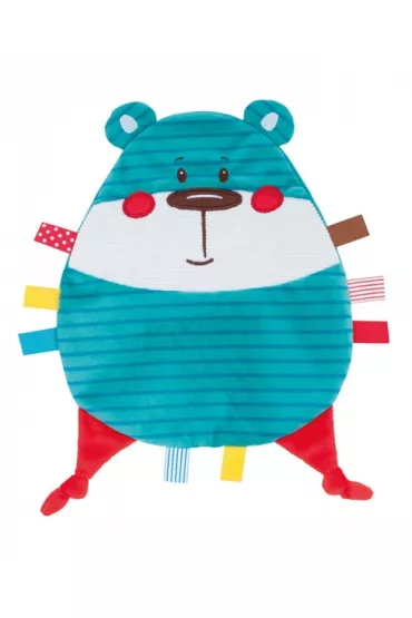 Zabawka została wykonana z miłych w dotyku materiałów o różnorodnej strukturze. Dzięki swojemu kształtowi jest łatwa do trzymania w małych rączkach, a kontrastowe kolory przyciągną uwagę dziecka.