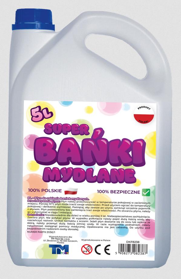 Duży płyn 5 litrowy, do robienia SUPER baniek mydlanych, to ogrom radości z dłuuugiej zabawy razem z Rodziną.