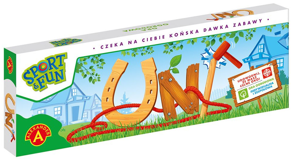 Oprócz wykonanych z drewna: palika, młotka, i 4 podków otrzymujemy w zestawie także dwa sznurki o różnej długości wraz z 8 szpilkami do ich mocowania. Sznurki wyznaczają dwa dodatkowe pola, na których upadek podkowy daje punkty. Im bliżej palika upadnie podkowa, tym więcej punktów zdobywamy.